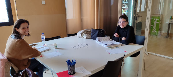 Alumnas repasando antes del examen.