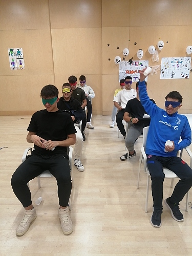 Práctica en clase para conocer la realidad de las personas invidentes.