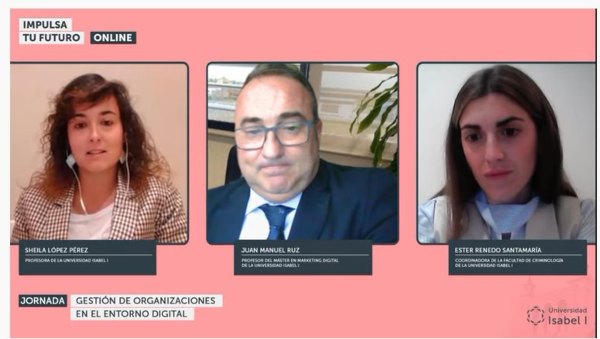 5 de mayo de 2022. El tercer bloque temático de la jornada científica de ‘Gestión de Organizaciones en el Entorno Digital’ ha correspondido al Grado en Derecho, coordinado por Roberto Cruz Palmera, director del grado en la Universidad Isabel I. En este bloque se han analizado los riesgos legales de las organizaciones en el entorno digital, exponiendo los beneficios que aportan la legislación actual pero también los vacíos que existen en algunas materias.