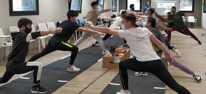 Alumnos de TEAS realizando una actividad práctica de aprendizaje de esgrima.