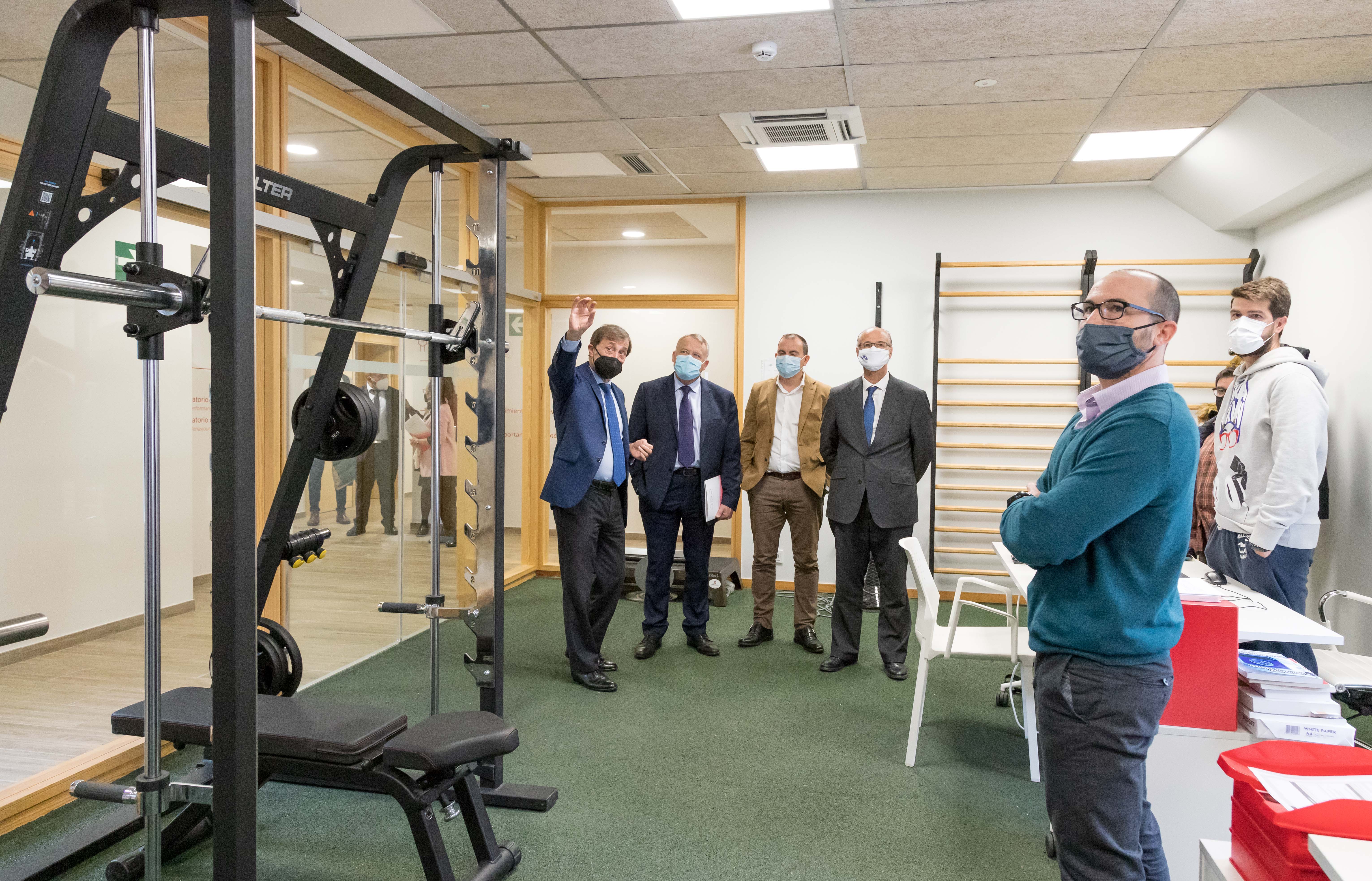 El rector, el Presidente de las Cortes de Castilla y León, el Vicepresidente de la Diputación de Burgos y el Presidente de la Diputación de Zamora visitando el Centro de Investigación de Ciencias de la Actividad Física y del Deporte de la Universidad Isabel I.