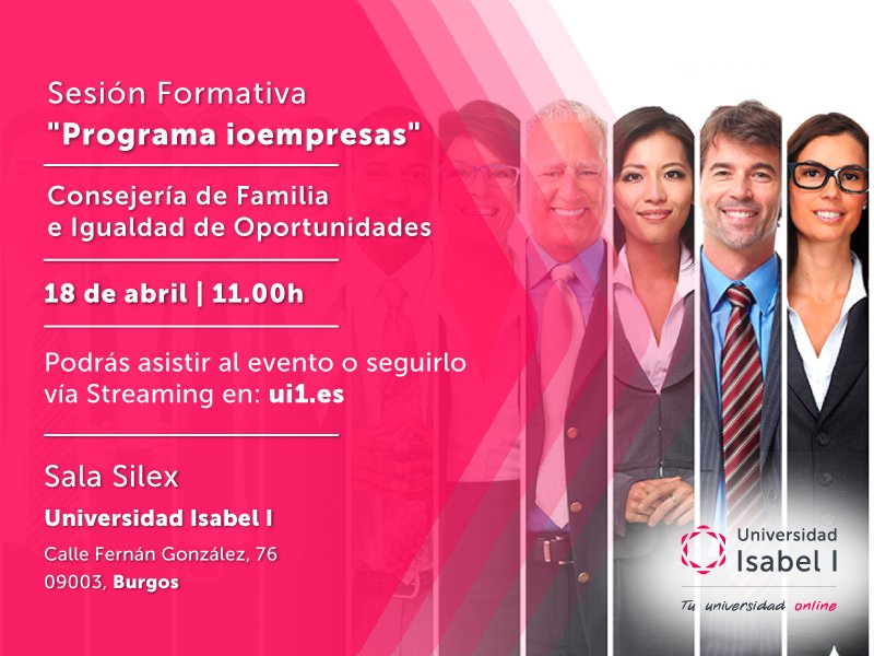 17 de abril de 2017. Este martes, 18 de abril, a partir de las 11 horas, tendrá lugar en la sede de la Universidad Isabel I en Burgos una sesión formativa enfocada a sensibilizar en lo relativo a la igualdad de oportunidades entre hombres y mujeres en el entorno laboral.