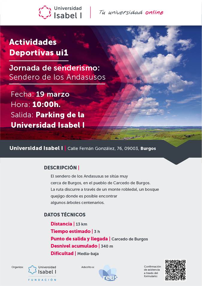 La Universidad Isabel I organizó el pasado domingo, 19 de marzo, una actividad deportiva adscrita a la Red Española de Universidades Saludabes (REUS), para recorrer el Sendero de los Andasusos. El itinerario, muy cercano a la capital burgalesa, concretamente en la localidad de Carcedo, discurre a través de un monte de robledal, un bosque de quejigo donde se pueden encontrar algunos ejemplares de árboles centenarios. 18 trabajadores de la Universidad y sus acompañantes completaron los 11,5 kilómetros de este recorrido, de exigencia física asequible, en una jornada de contacto directo con la naturaleza.