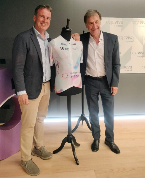 Borja Suárez y Alberto Gómez Barahona con el maillot de la Universidad Isabel I.