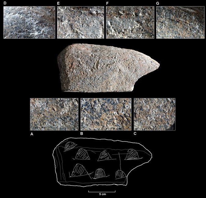 El investigador de la Universidad Isabel I presenta un ejemplo de arte paleolítico, circunscrito al yacimiento del Molí del Salt (Tarragona), consistente en una placa con motivos grabados semicirculares dispuestos en tres niveles.