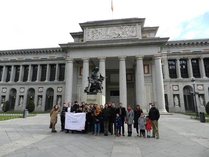 Los participantes en la actividad organizada por la Universidad Isabel I en la entrada al Museo del Prado.