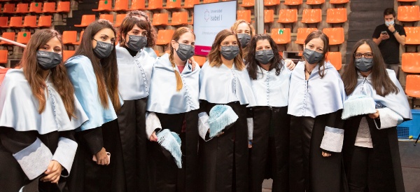 Laura Illescas, la segunda por la derecha de la imagen en la última Graduación de la Universidad Isabel I junto a sus compañeras docentes de la titulación.