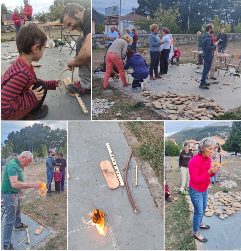 Los alumnos también han podido aprender en estos talleres cómo se hacía fuego con dos palos mediante la técnica de fricción de madera. En la actividad arqueológica experimental han conocido otras actividades fundamentales para la supervivencia en la prehistoria entre las que destacan las posibilidades comunicativas de instrumentos como la bramadera. Todos estos conocimientos se han puesto en relación con los yacimientos arqueológicos de Ojo Guareña entre los que destaca Prado Vargas (Cornejo).