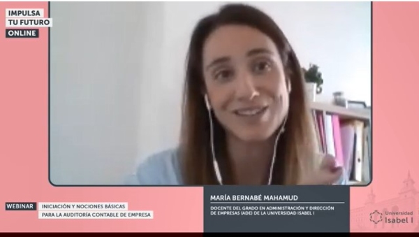 9 de mayo de 2023. La Universidad Isabel I ha organizado un webinar sobre la ’Iniciación y nociones básicas para la auditoría contable de empresa' ofrecido por María Bernabé Mahamud, docente del Grado en ADE y Marta Sánchez Viejo, coordinadora del Grado en ADE que ha actuado como moderadora. Organizado por la Facultad de Ciencias Jurídicas y Económicas, este webinar ha analizado los cimientos de cómo se realiza una auditoría contable en una empresa, una función orientada a la revisión y validación de los estados financieros de una empresa realizada por profesionales independientes. El objetivo del webinar ha sido iniciar a los alumnos en el concepto de auditoría, conocer su alcance y asimilar los conceptos básicos mediante la realización de algún ejemplo práctico.