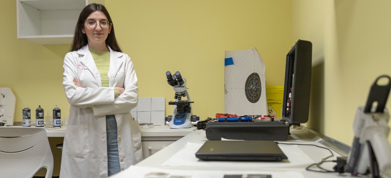María Hernández en los Laboratorios de Criminología de la Universidad Isabel I.