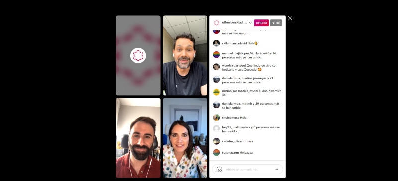 Luis Quevedo, Francesc Gascó y Marián García en el webinar en el Instagram de la Universidad Isabel I.