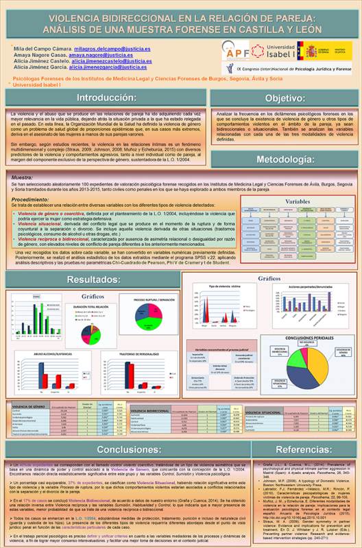 La intervención de la profesora, junto a otros psicólogos forenses de los Institutos de Medicina Legal y Ciencias Forenses de Burgos, Segovia, Ávila y Soria, versó sobre la Violencia bidireccional en la relación de pareja: análisis de una muestra forense en Castilla y León.