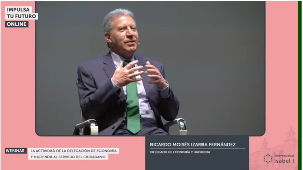 20 de marzo de 2023. Ricardo Moisés Izarra Fernández, Delegado de la Delegación de Economía y Hacienda de la Agencia Tributaria en Burgos, y Santiago Cano Martínez, Gerente Territorial del Catastro en Burgos, han ofrecido un webinar en la Universidad Isabel I dentro de la Semana de la Administración Abierta. Ambos ponentes, presentados por Lara Ortega Alegre, Directora del Máster en Ejercicio de la Abogacía de la Universidad Isabel I, han analizado ‘la actividad de la Delegación de Economía y Hacienda al servicio del ciudadano’. La Semana de la Administración Abierta tiene como objetivo la divulgación de las distintas actividades de la Administración del Estado en las 50 provincias españolas.