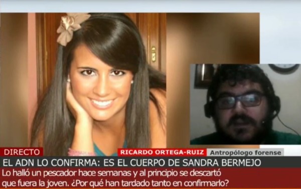El programa quiso abordar con esta entrevista al profesor Ortega Ruiz cómo la antropología forense se pone al servicio de la investigación para desvelar qué ha ocurrido en un suceso tan trágico como la muerte de Sandra Bermejo. Hasta el momento, el cotejo de su ADN, realizado por la Policía Científica de la Comisaría Provincial de A Coruña, permitió descubrir que se trataba de los restos de la joven, ya que una radiografía inicial de su dentadura dio resultado negativo.
