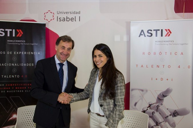 29 de mayo de 2018. El rector de la Universidad Isabel I, Alberto Gómez Barahona, y la CEO de ASTI TechGroup, Verónica Pascual Boé, han firmado hoy un convenio marco de colaboración en el que se establecen las líneas de cooperación entre ambas instituciones en materia de formación, asesoramiento, investigación y transferencia del conocimiento.
