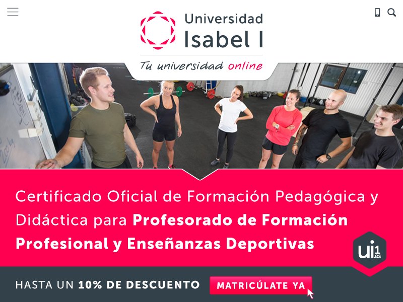 20 de octubre de 2017. La Universidad Isabel I abre el plazo de matrícula para el Certificado Oficial de Formación Pedagógica y Didáctica para Profesorado de Formación Profesional y Enseñanzas Deportivas. Esta titulación, que arranca el próximo 20 de noviembre con una carga lectiva de 60 créditos e impartida bajo la modalidad online con prácticas presenciales obligatorias, está autorizada por la Consejería de Educación de la Junta de Castilla y León, tiene validez en todo el territorio nacional, y está destinadas a todas las personas que estén en posesión de un título de Formación Profesional o deportiva que quieran ejercer la docencia, pero que por las características de su titulación no puedan acceder a los estudios de Máster en Formación del Profesorado.