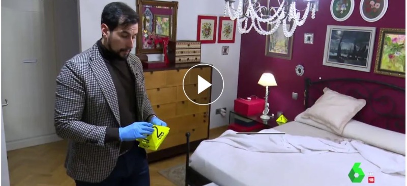 Otra de las pruebas se descubre a los pies de la cama. En este lugar, el equipo forense identifica una lentilla “que es compatible con el perfil genético de la víctima”, destaca Víctor Rodríguez. Además, en el armario del dormitorio se descubre una colcha con rastros de ADN que son compatibles tanto con la víctima como con el agresor.