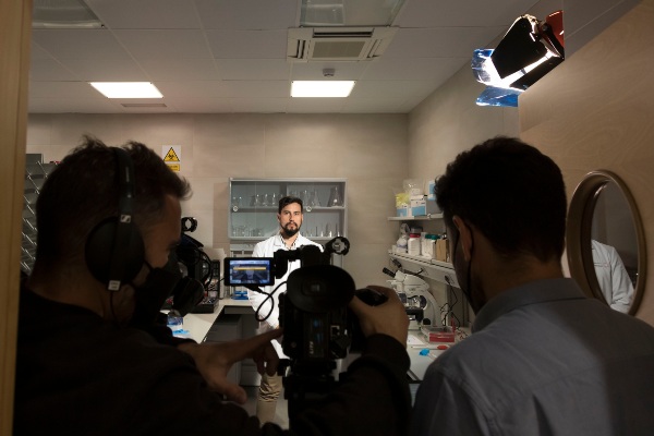 Fotografía durante la grabación del programa en el laboratorio de Criminología de la Universidad.