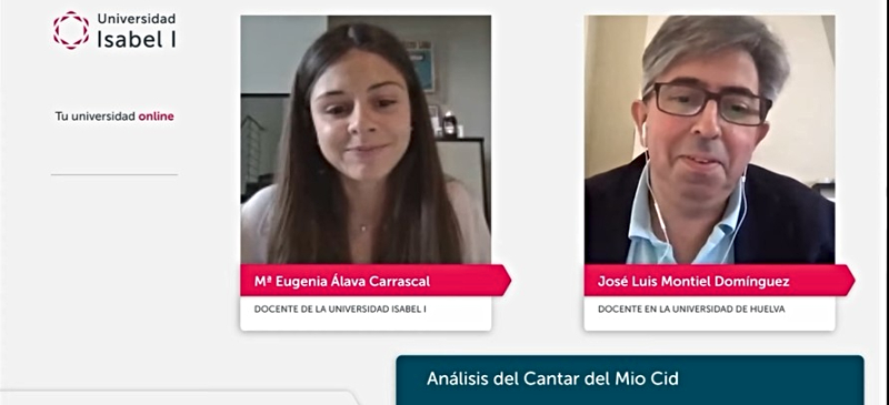 22 de mayo de 2024. La Universidad Isabel I ha concluido el último de los webinars del seminario internacional 'Pasados, Artes, Paisajes', organizado por el Grado en Historia, Geografía e Historia del Arte, que comenzó en octubre de 2023. El evento de cierre, titulado "El 'Cantar del Mio Cid'. Análisis epistemológico", contó con la destacada participación de José Luis Montiel Domínguez, de la Universidad de Huelva, y fue coordinado por María Eugenia Álava, de la Universidad Isabel I.